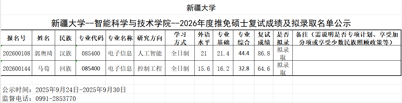 So米体育 -2026年推荐免试研究生面试成绩及拟录取名单公示